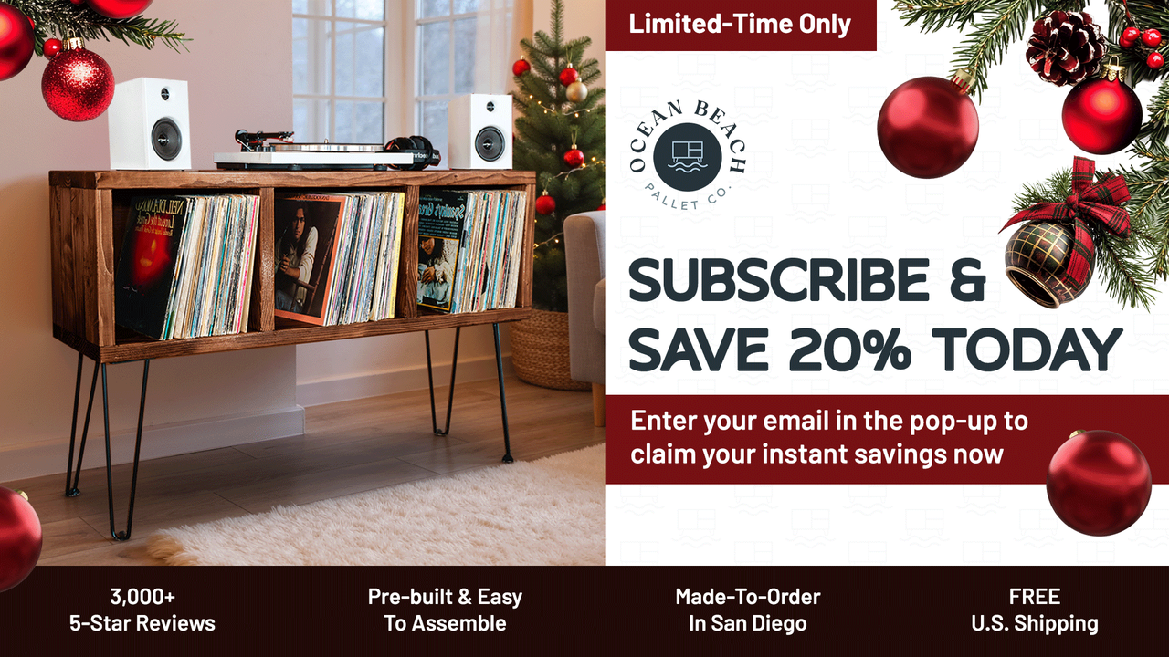 Our mission at Ocean Beach Pallet Co. is to provide our customers with the highest quality, wood furniture that is durable, customizable and affordable. We specialize in Record Player Stands, Record Cabinets, TV Stands, Media Entertainment Centers and Coffee Tables. Units handmade out of Kiln Dried Douglas Fir Wood 2x4s and not the particle board retailers sell. Our belief is that furniture should be more than just functional; it should be an extension of your personal style and a reflection of your unique taste.
