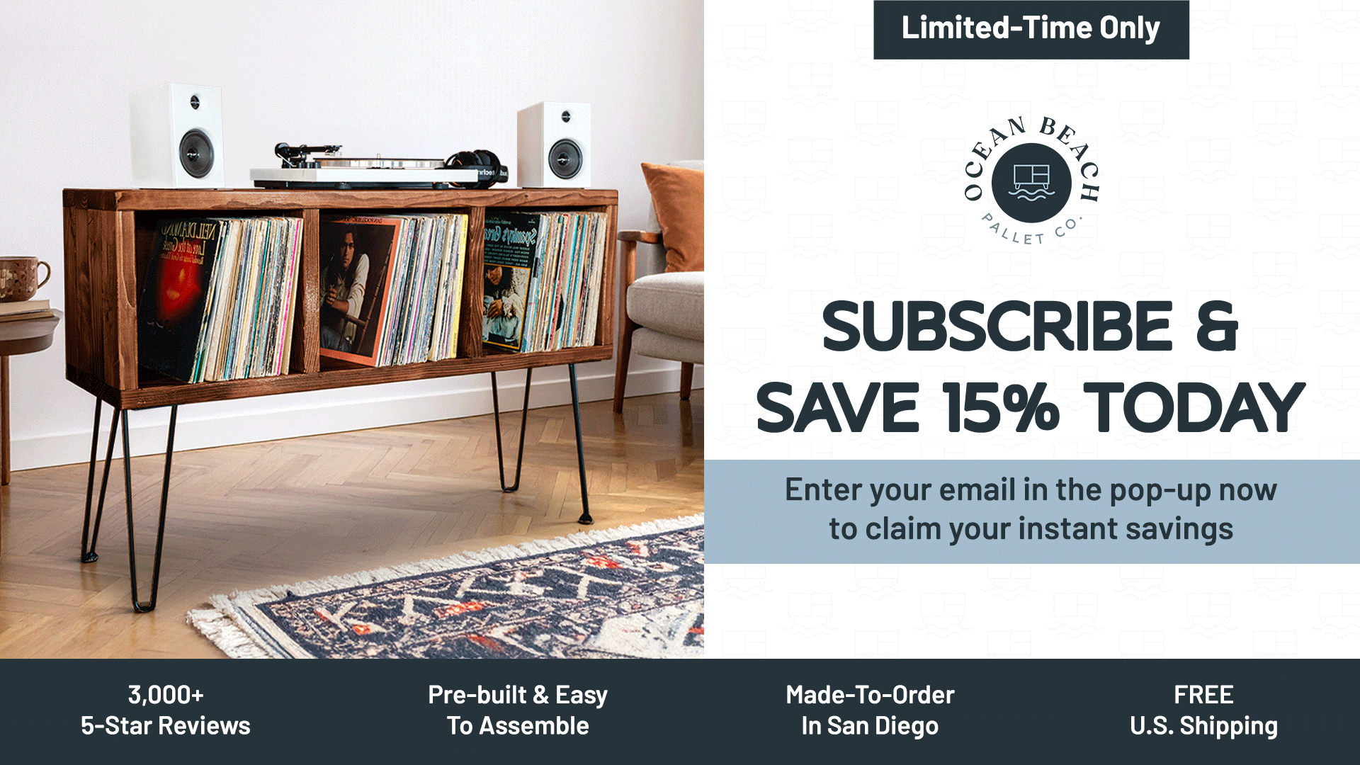 Our mission at Ocean Beach Pallet Co. is to provide our customers with the highest quality, wood furniture that is durable, customizable and affordable. We specialize in Record Player Stands, Record Cabinets, TV Stands, Media Entertainment Centers and Coffee Tables. Units handmade out of Kiln Dried Douglas Fir Wood 2x4s and not the particle board retailers sell. Our belief is that furniture should be more than just functional; it should be an extension of your personal style and a reflection of your unique taste.