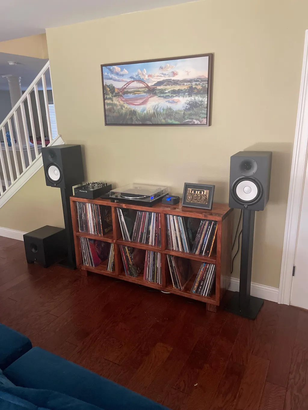 Showcase your turntable and vinyl record collection. Perfect for music lovers who need a record player stand and storage for records. The handcrafted design ensures that each unit is unique and made to the highest standards.