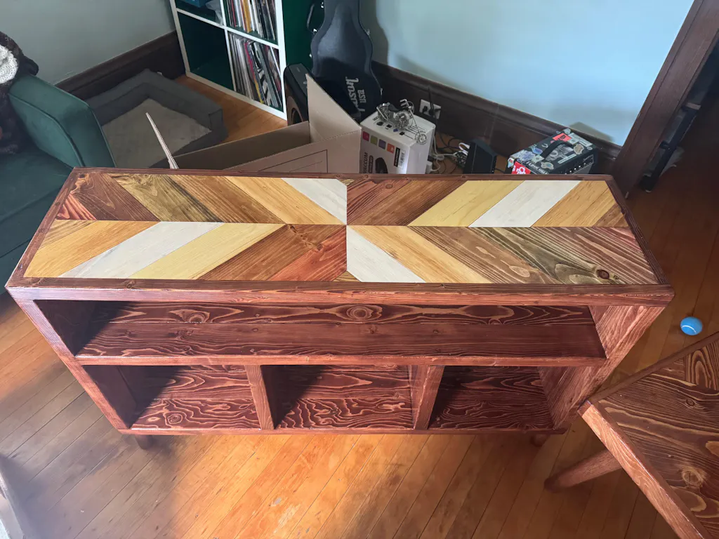 Got this and a burst coffee table as well, the craftsmanship is amazing and the help I got in choosing a suitable stain for my home was superb. I’ll be looking to this company first for my next wood based furniture need.