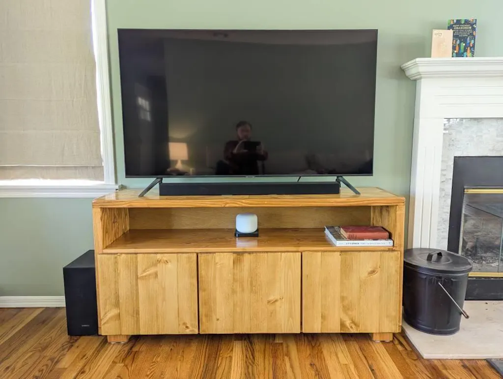 Ordered a 55 inch piece with doors in the golden oak color as a TV stand. Shipped well. The doors and feet were pre-drilled and easy to put on. Seems sturdy and looks good in our living room.