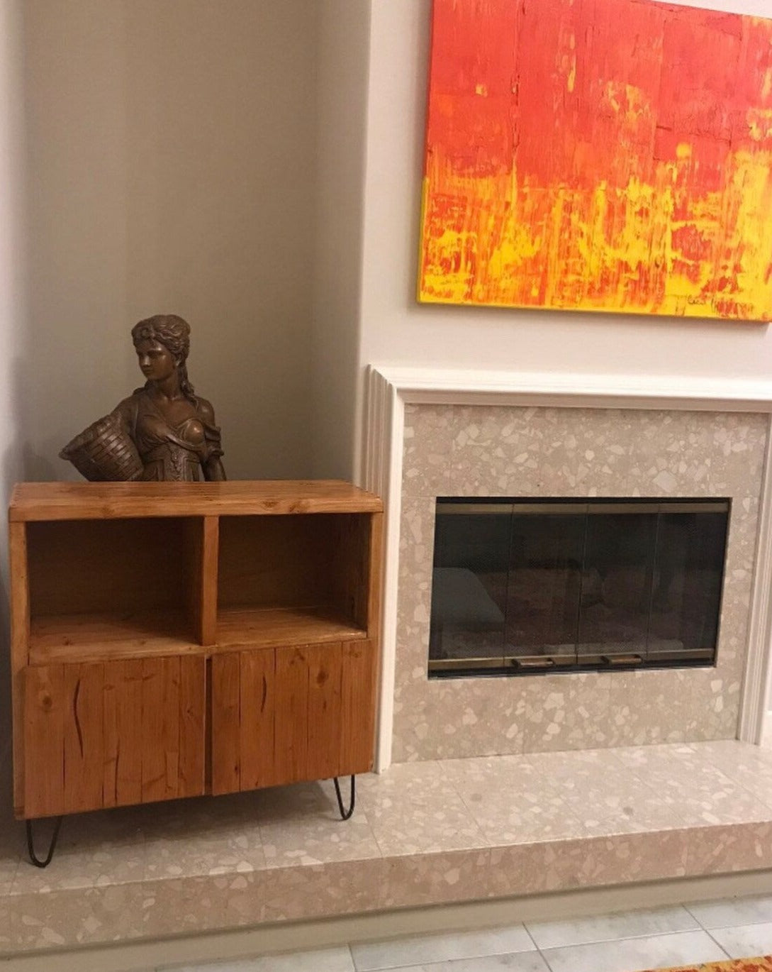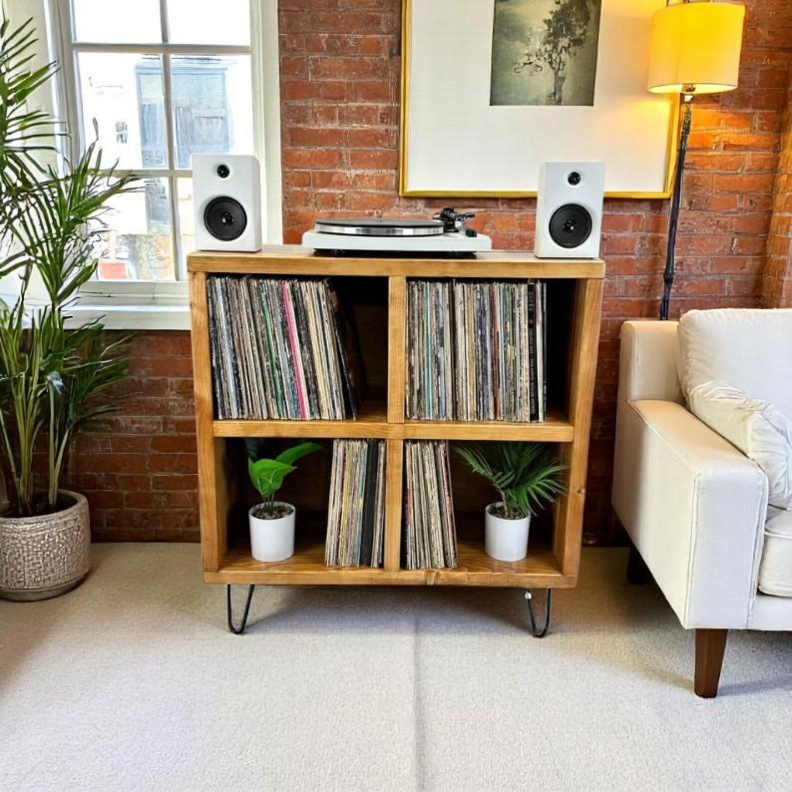 Handcrafted stand for your turntable and vinyl collection, offering stylish and functional storage.