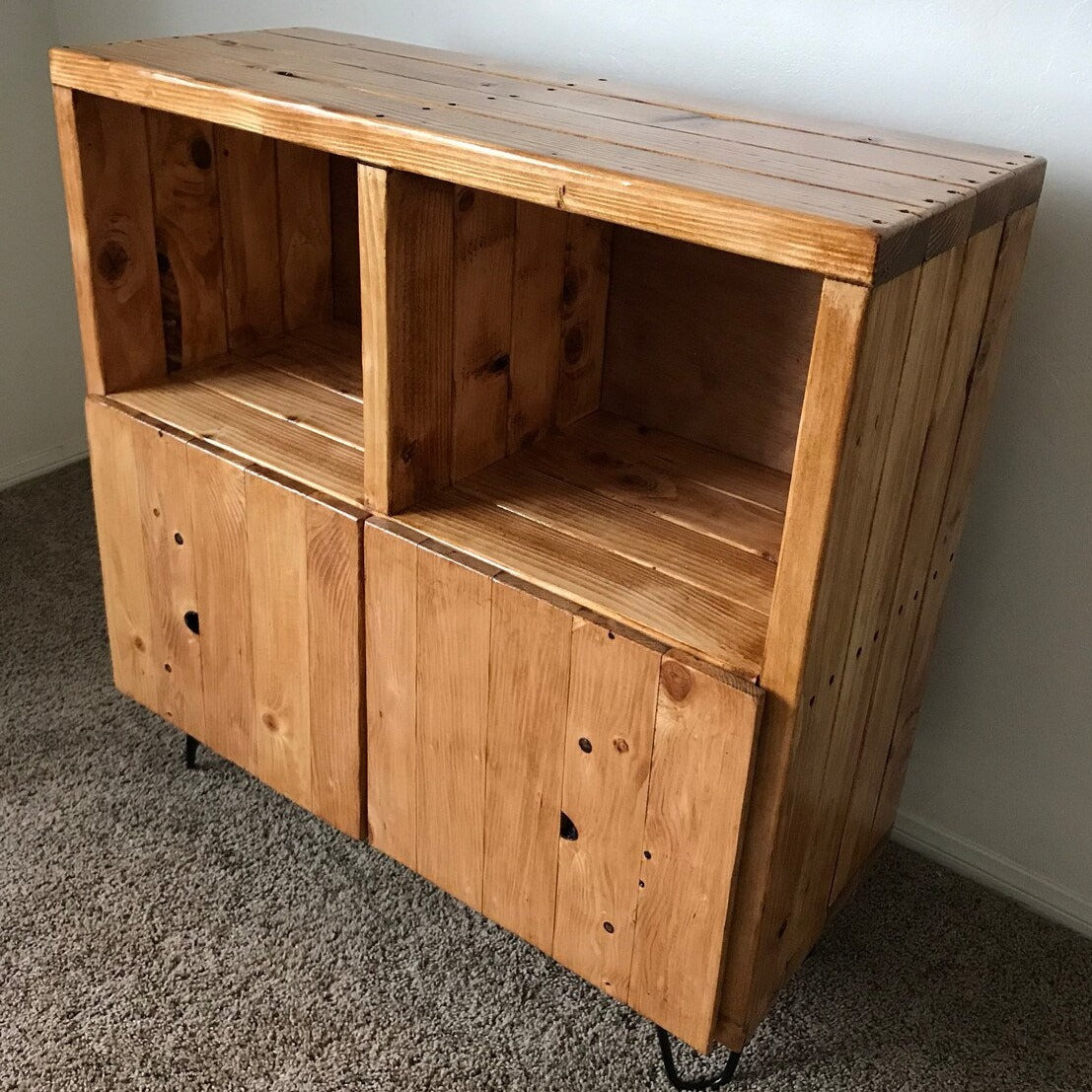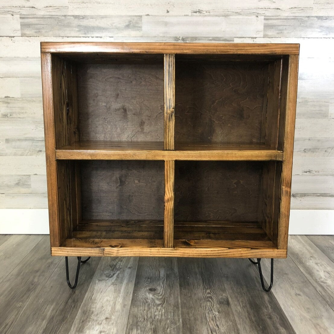 Had looked at a bunch of vinyl storage options on Etsy and loved the customization options on this store, especially with regard to the stain and leg length options. Arrived within the time frame, and came securely packaged. So, so happy with our unit. if you're looking for a sign to buy something from here, this is it!